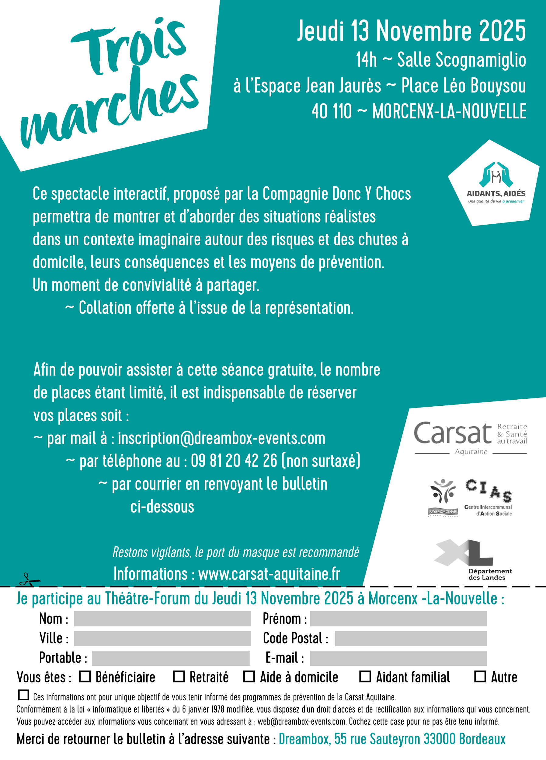 Notre présence fait partie de l’évènement organisé par la Carsat Aquitaine à Morcenx, spectacle interactif autour des risques et des chutes à domicile,